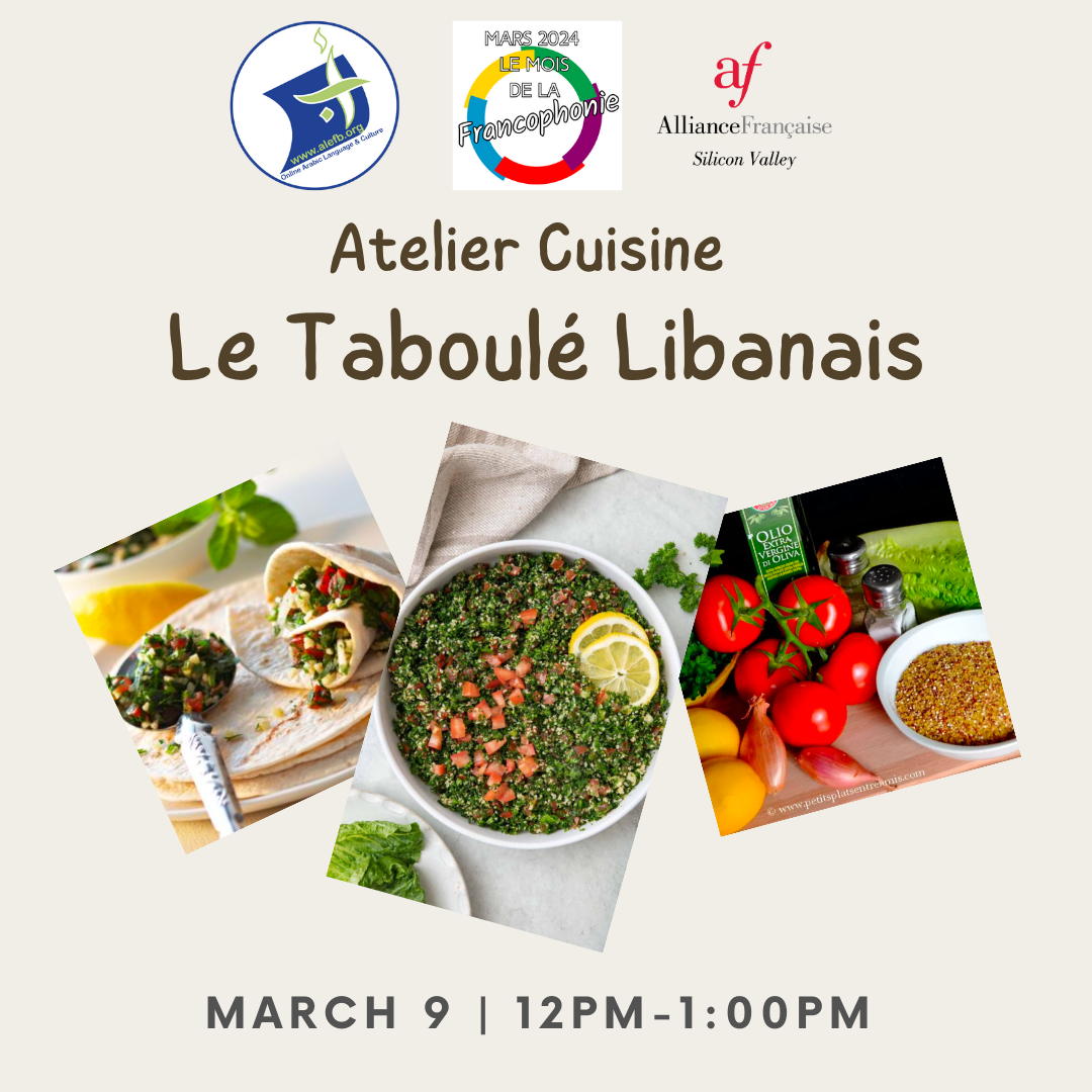 Alliance Française Silicon Valley in partnership with Alefb, is hosting a cooking class featuring Lebanese Tabbouleh Salad.