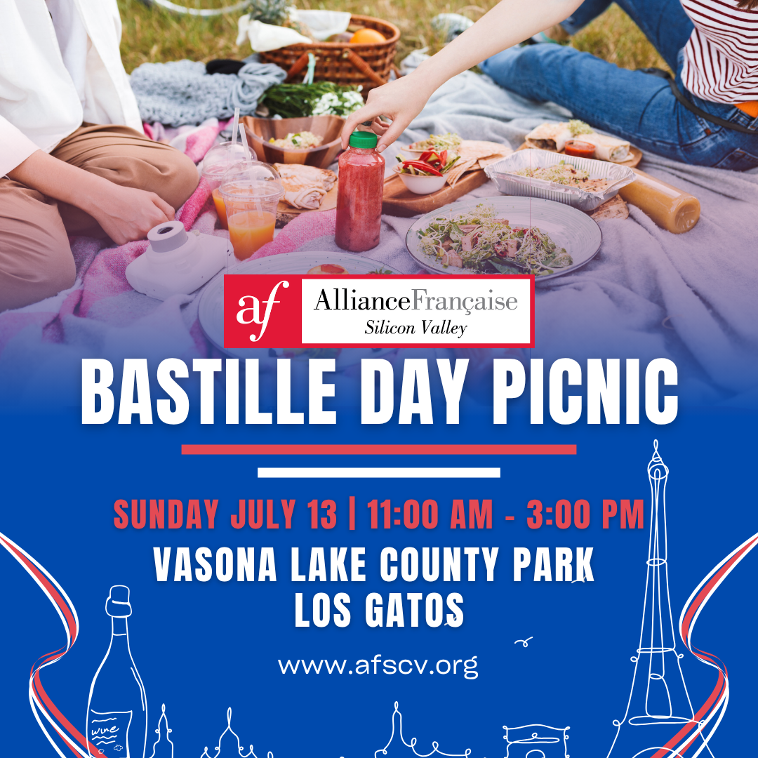 To mark la Fête Nationale, the Alliance Française Silicon Valley invites you to a Bastille Day picnic on Sunday, July 13, 2025, at Vasona Lake County Park, Meadowbrook Site in Los Gatos.