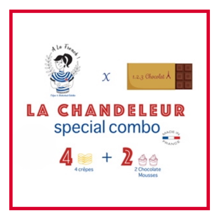 Indulge in a combo of 4 delicious crepes (A La French) paired with 2 luscious chocolate mousses (123 Chocolat) and we'll donate $5 to The Alliance Française Silicon Valley!