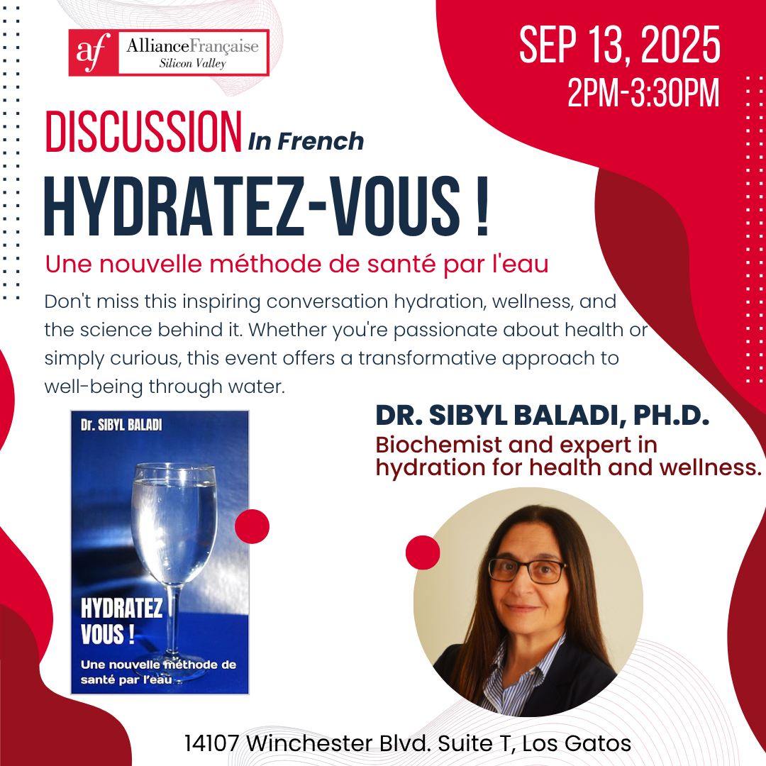 We are thrilled to invite you to a unique event featuring Dr. Sibyl Baladi, Ph.D., a biochemist and expert in hydration for health and